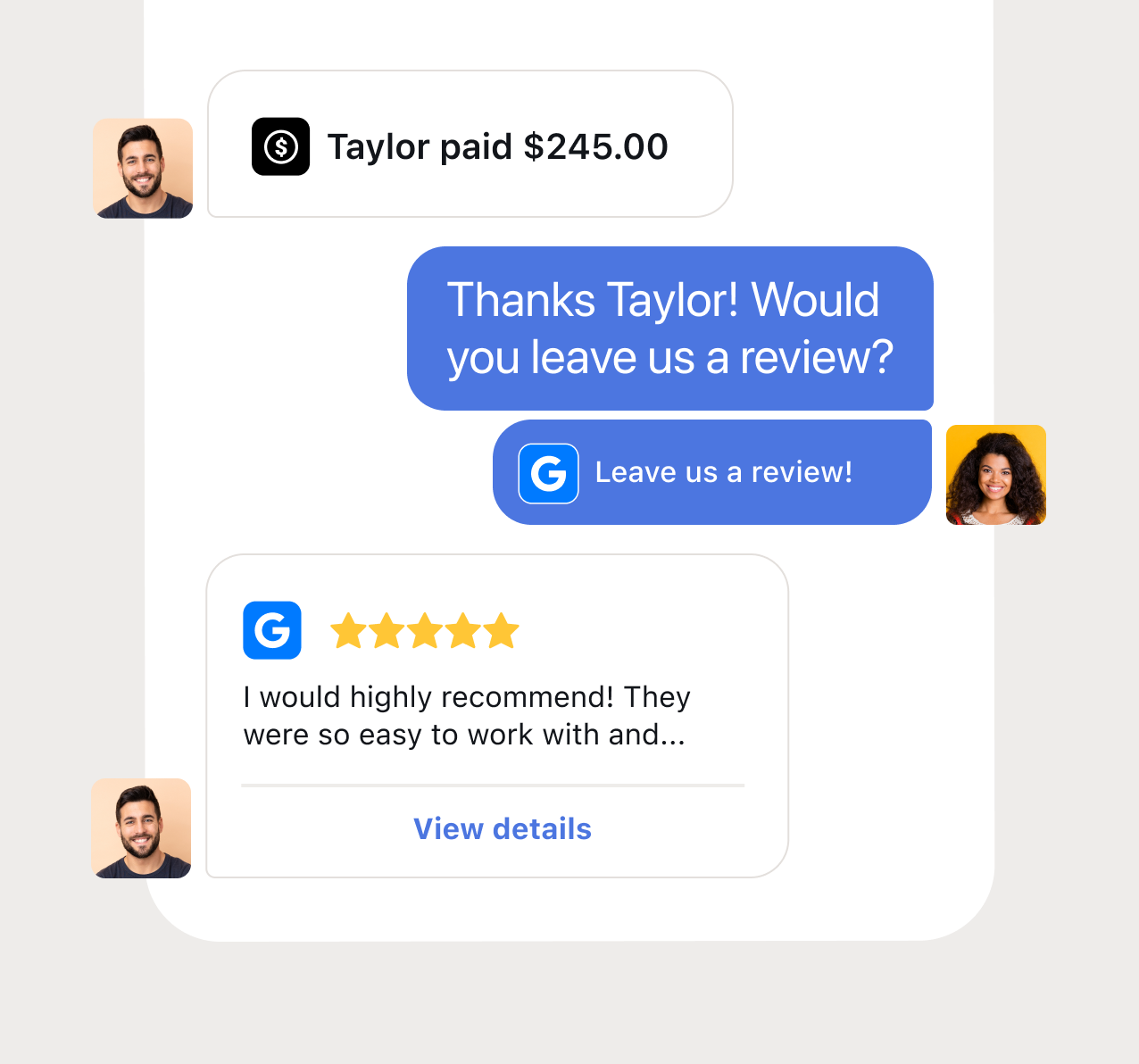 Payments are a key touchpoint in your customer’s journey. Now use it to collect more reviews, drive more leads, and encourage repeat business.