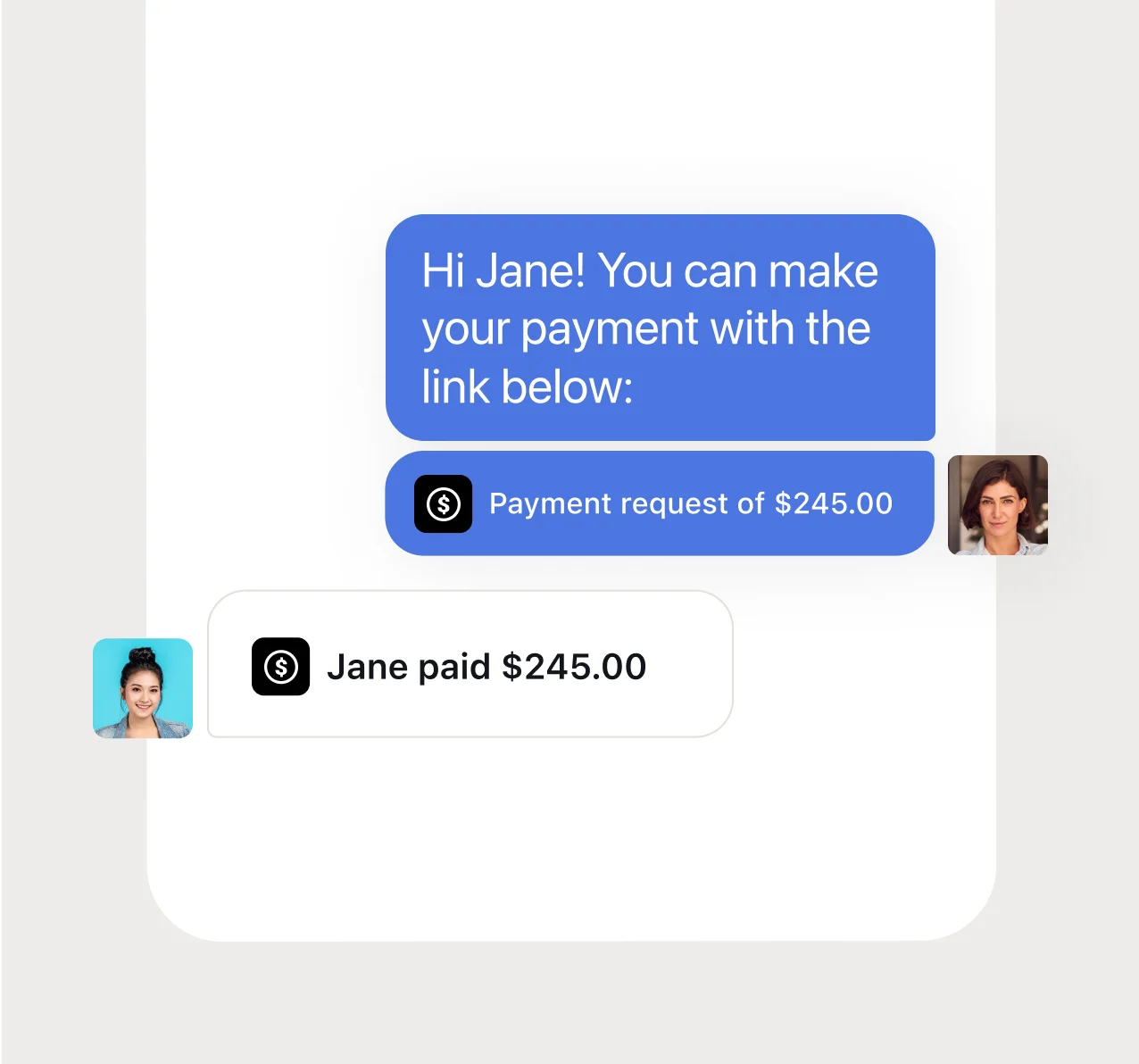 The easiest way to pay for you and your customers. Send messages and invoices in the same thread to get paid quickly and drive more revenue.